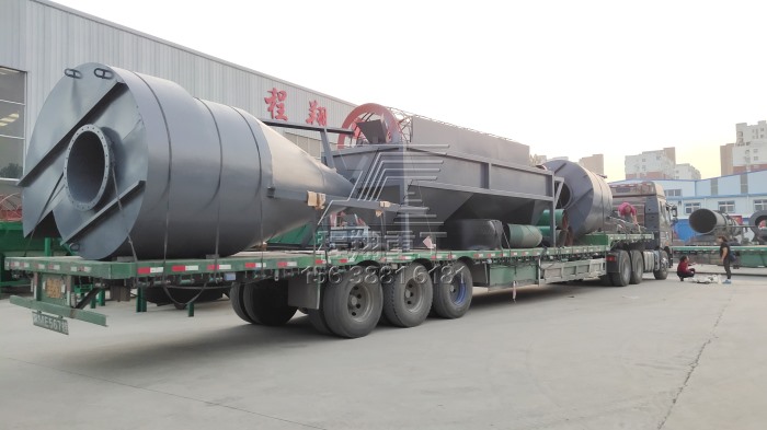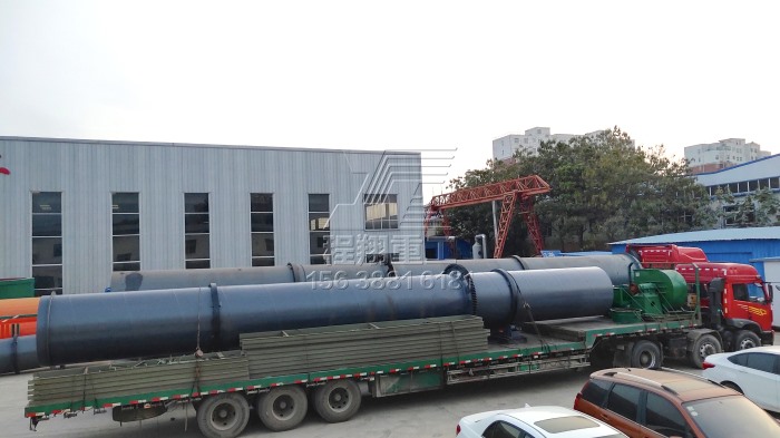 第一車與第二車裝載的是烘干、冷卻機(jī),滾筒烘干機(jī)的直徑為1.5米,長度15米,回轉(zhuǎn)式冷卻機(jī)的型號小一號,直徑為1.4米,長度為14米。
