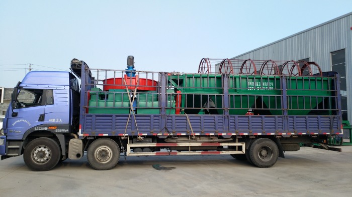 查看 > 20 2020/11由于該豬糞秸稈有機(jī)肥料生產(chǎn)線產(chǎn)量較大,因此分為多車裝置運(yùn)輸。主要的豬糞加工設(shè)備有:大型秸稈粉碎機(jī)、履帶式翻堆機(jī)、臥式攪拌機(jī)、新型三合一造粒機(jī)、不同型號的滾筒篩分機(jī)以及多個型號的烘干冷卻設(shè)備。滾筒烘干設(shè)備風(fēng)頭以及風(fēng)機(jī)安置熱風(fēng)爐以及冷卻設(shè)備多個烘干冷卻設(shè)備履帶式翻堆機(jī)以及大型秸稈粉碎機(jī)二次烘干設(shè)備滾筒篩分機(jī)以及鏟車喂料倉本次豬糞秸稈有機(jī)肥料生產(chǎn)線工藝設(shè)計流程為:利用大型秸稈粉碎機(jī)將稻草秸稈等粉碎均勻,