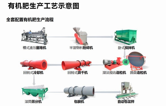 成套的顆粒有機肥生產(chǎn)線主要設備有:有機肥翻堆機、半濕物料粉碎機、臥式攪拌機、有機肥造粒機、滾筒烘干機、冷卻機、滾筒篩分機、包膜機以及自動包裝秤等等。