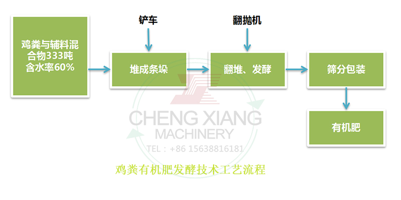 雞糞有機肥發(fā)酵技術工藝流程圖