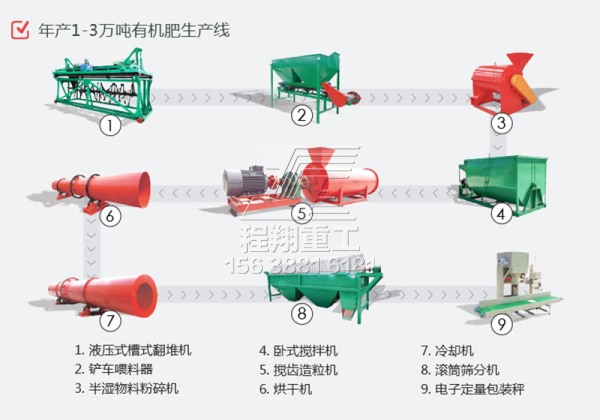 年產(chǎn)1-3萬(wàn)噸的有機(jī)肥生產(chǎn)線成套設(shè)備