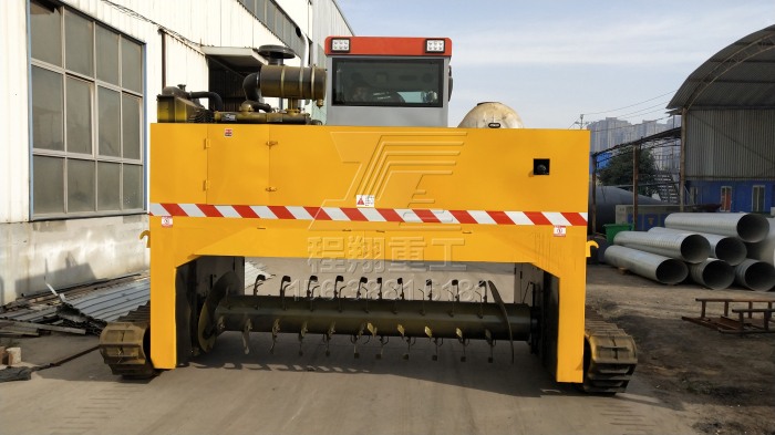 程翔重工研制的新款履帶型翻堆機,帶照明設(shè)備,光照條件不好或者夜間都可進行翻堆作業(yè)。