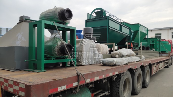 查看 > 20 2020/11由于該豬糞秸稈有機肥料生產(chǎn)線產(chǎn)量較大,因此分為多車裝置運輸。主要的豬糞加工設(shè)備有:大型秸稈粉碎機、履帶式翻堆機、臥式攪拌機、新型三合一造粒機、不同型號的滾筒篩分機以及多個型號的烘干冷卻設(shè)備。滾筒烘干設(shè)備風頭以及風機安置熱風爐以及冷卻設(shè)備多個烘干冷卻設(shè)備履帶式翻堆機以及大型秸稈粉碎機二次烘干設(shè)備滾筒篩分機以及鏟車喂料倉本次豬糞秸稈有機肥料生產(chǎn)線工藝設(shè)計流程為:利用大型秸稈粉碎機將稻草秸稈等粉碎均勻,