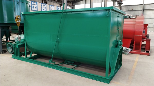 3)攪拌設(shè)備:臥式攪拌機(jī)的作用在于將粉碎后的物料和氮磷鉀無機(jī)肥料及其他添加物等各種原料按一定比例進(jìn)行粉碎、配比和混合。攪拌均勻的有機(jī)物質(zhì),造粒之后營養(yǎng)元素會(huì)均勻一致的分布到每個(gè)顆粒當(dāng)中。