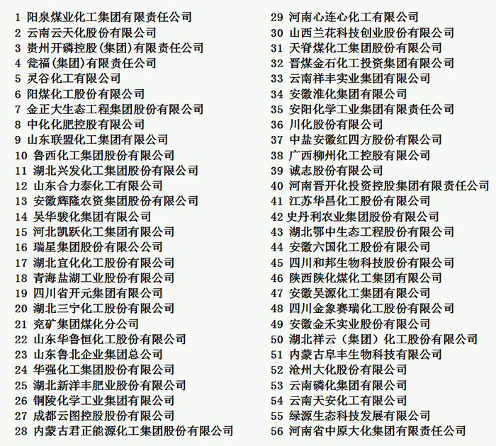 2018年化肥生產(chǎn)百強(qiáng)企業(yè)名單